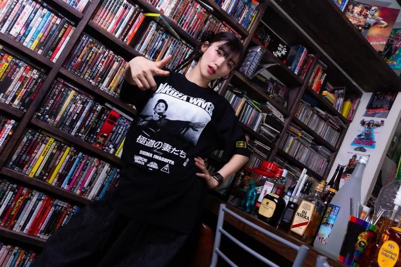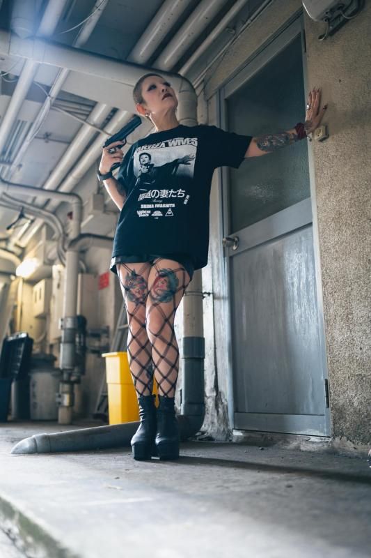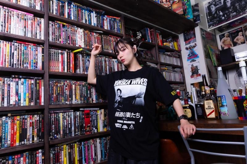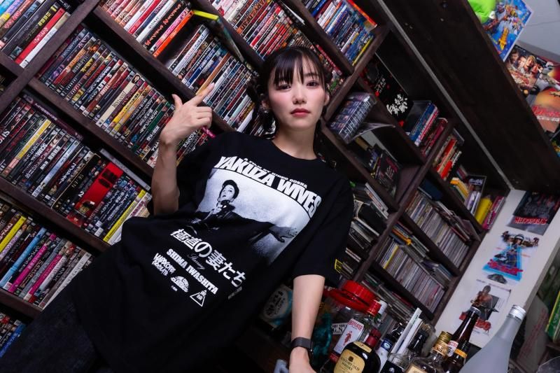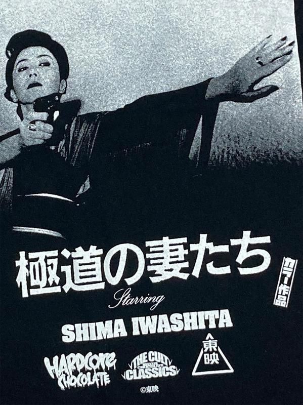 ハードコアチョコレートとのコラボは、拳銃を構える岩下の姿と、全身に彫り込まれた刺青姿の男の二種類で登場だ。
