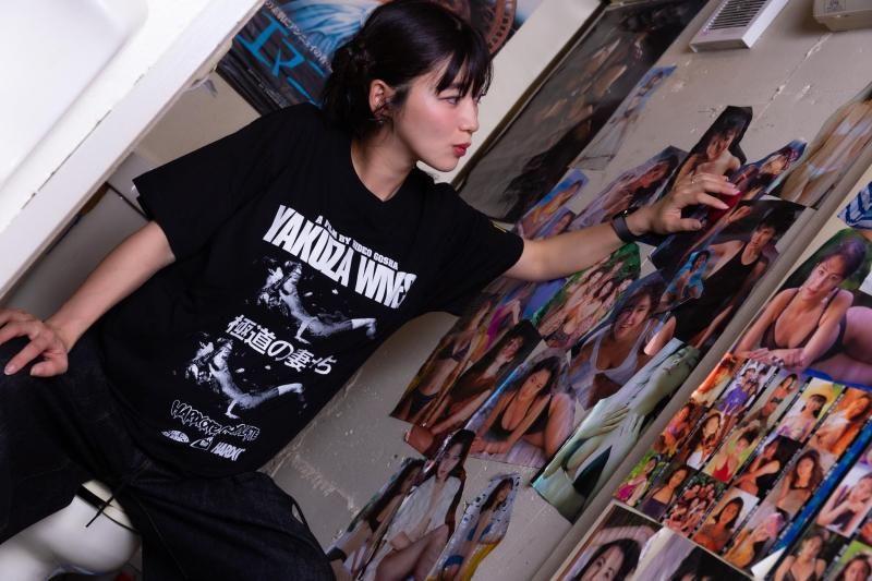 ハードコアチョコレートとのコラボは、拳銃を構える岩下の姿と、全身に彫り込まれた刺青姿の男の二種類で登場だ。